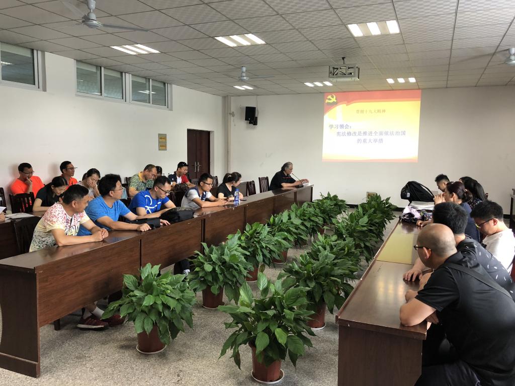 2018年5月16日,Beat365组织全体党员学习领会《宪法修改是推进全面依法治国的重大举措》一文,会议由漆勇书记主持。