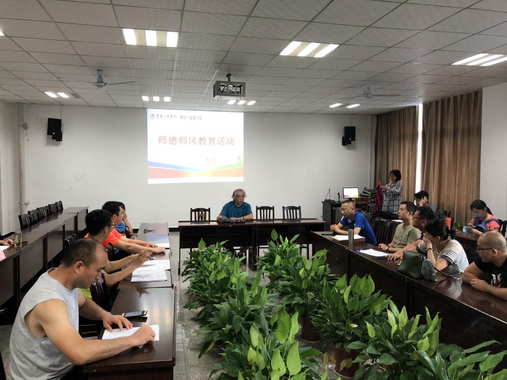 2018年7月5日,在学院四楼会议室,Beat365开展师德师风教育活动,会议由漆勇书记主持,全体教职工参加。