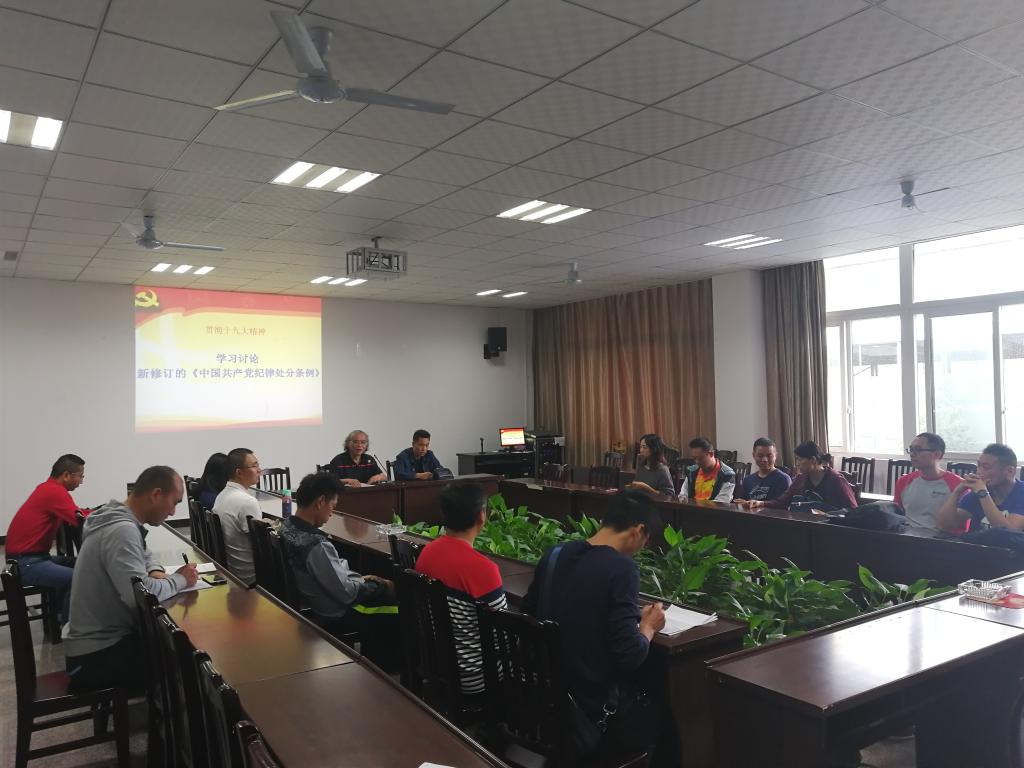 2018年9月13日Beat365组织全体党员学习讨论新修订《中国共产党纪律处分条例》,会议由漆勇书记主持。