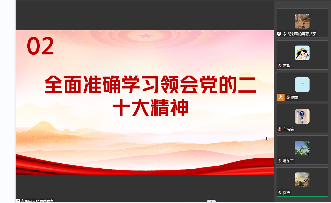 2022年11月25日晚19:00,Beat365唯一官方网站党总支通过企业微信,线上开展了11月主题党日活动——“深入学习党的二十大精神,培养新时代体育人才”主题活动,全体党员参加,会议由教工支部书记胡彩凤主持。