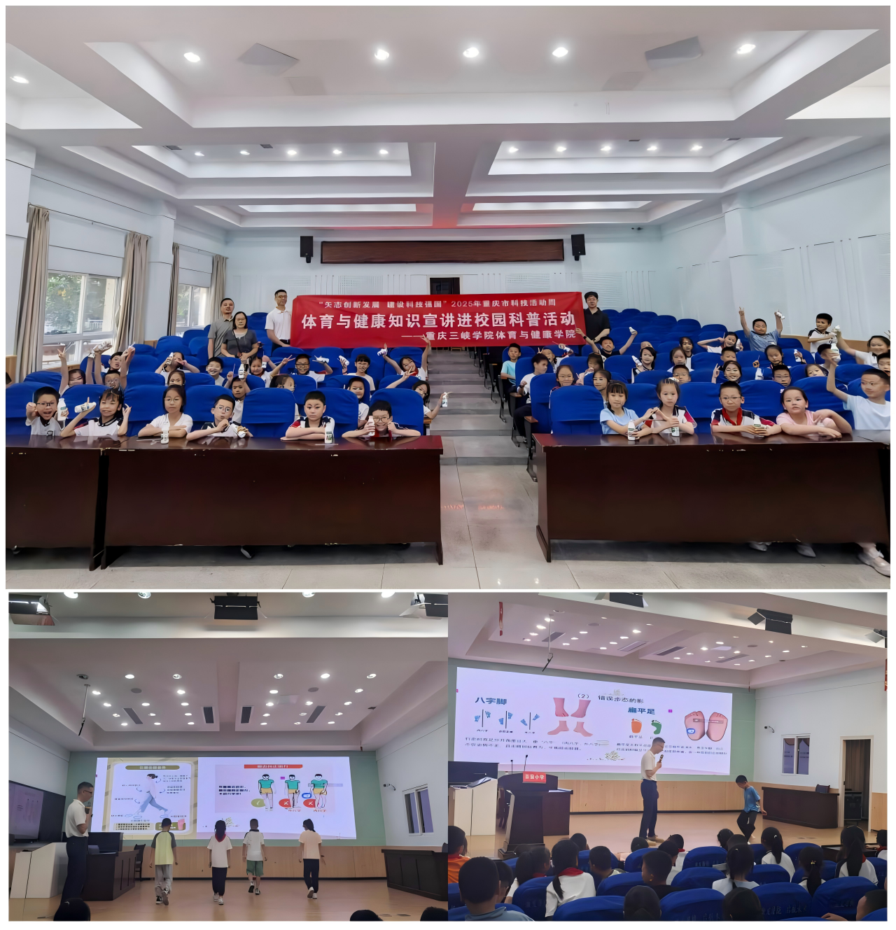 随后,李俊成老师从日常站姿和走路姿势入手,通过生动形象的图片和动画演示,向孩子们讲解了不良姿势对身体发育、体态美观及身体健康的危害。同时,他还积极引导学生参与动作示范,并以通俗易懂的语言耐心解答了孩子们的疑问。