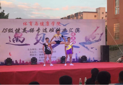 火热的天气阻挡不了他们的对专业的热爱,6月27日晚,在山顶食堂门口举办了一场看点十足的2015级健美操专选结业汇演晚会。本次表演既是结业成果的展示,也是这群青春活泼的俊男靓女们带给大家的视觉盛宴!