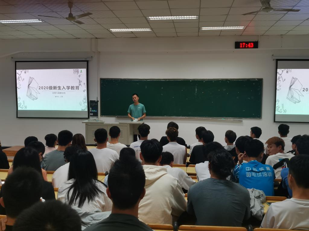 2020年9月25日,Beat365唯一官方网站新生报道结束后的第一天,学院领导、系主任与辅导员纷纷踏入教室,为新生上“开学第一课”。院长向家俊、副院长黄健、教研室主任刘铮以及辅导员陈果在二教104教室与体育教育以及运动人体科学专业的学生见面,开启了学院领导与2020级新生的首场见面会。