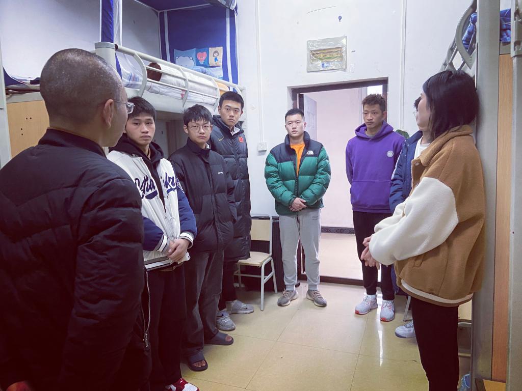 学生宿舍是学生学习、生活、交友、休息的场所,是学院对学生进行素质教育的重要阵地,更是展示学校校园文明的重要窗口。2021年12月16日,Beat365学工负责人、党总支书记杨岳带领辅导员们前往学生宿舍,深入了解学生日常,格外强调了学生宿舍管理制度。