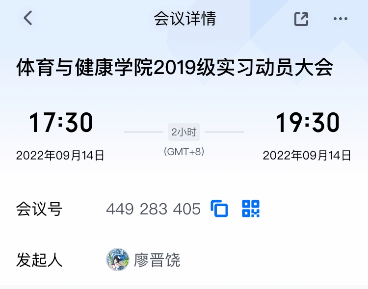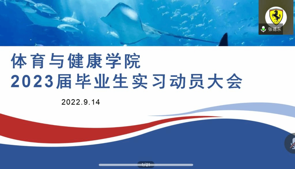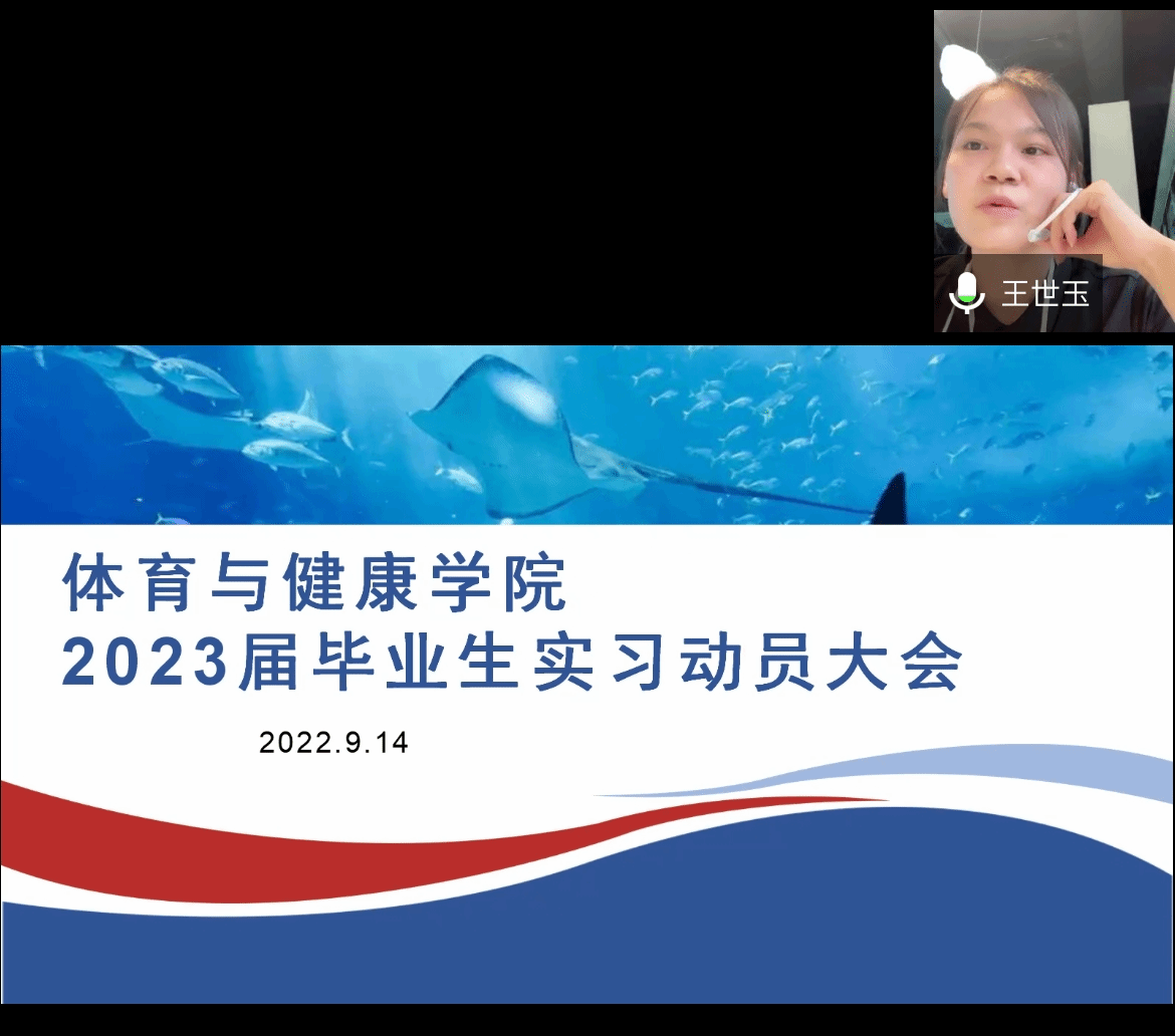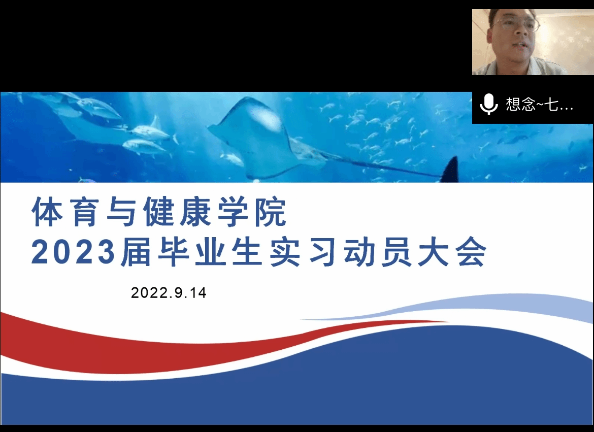 2022年9月14日,Beat365唯一官方网站召开2023届本科生实习动员大会。为落实学校疫情防控相关管理政策,本次动员大会在腾讯会议召开,参会人员有Beat365唯一官方网站本科教学分管领导刘建宇副院长、实习实训中心主任张德东老师、体育系主任侯圣苍老师、实习带队教师代表数名、2023届辅导员廖晋饶老师、2023届全体本科学生。