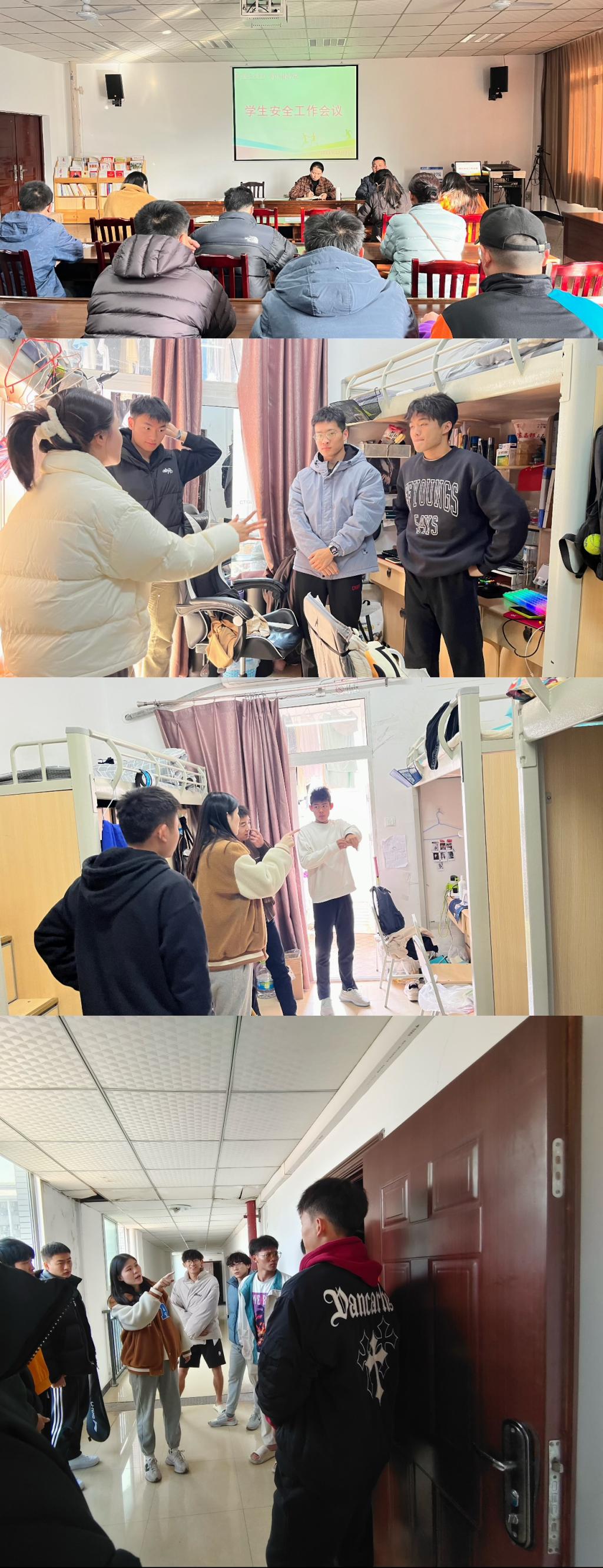 为强化大学生安全意识,提高个人安全素养,保证学生及时了解寝室安全以及校内安全注意事项,掌握安全知识,Beat365通过组织学工队伍及教师代表召开学生安全工作会议、辅导员深入走访学生寝室,带领年级长、班长、寝室长等班委分工排查学生宿舍安全隐患等方式开展学生安全主题教育活动。