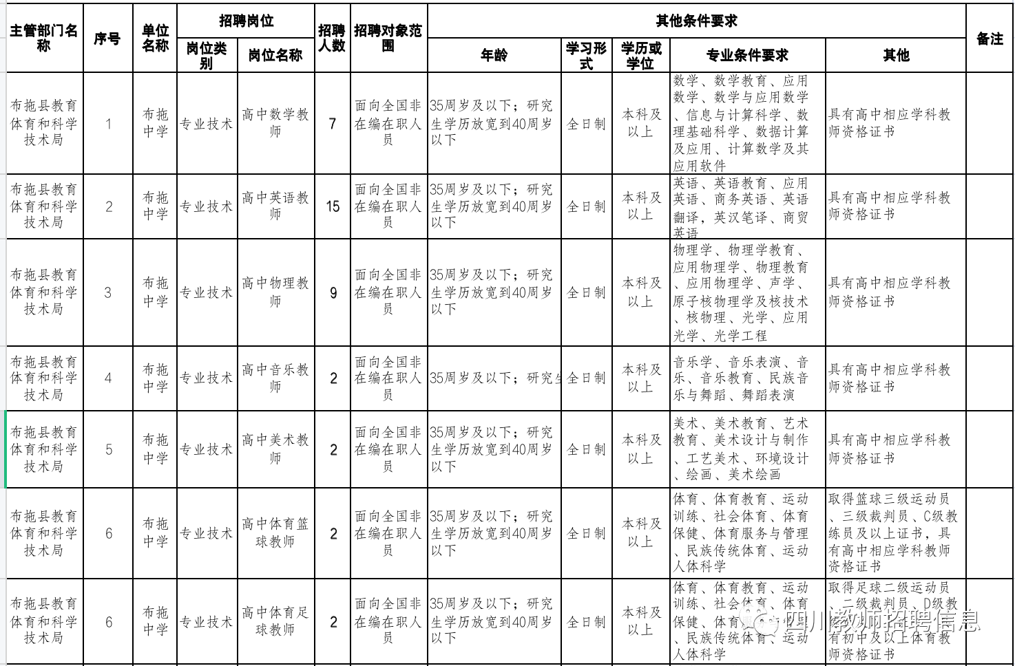 招聘对象及范围详见《布拖县2022年公开考核招聘初、高中教师岗位一览表》。
