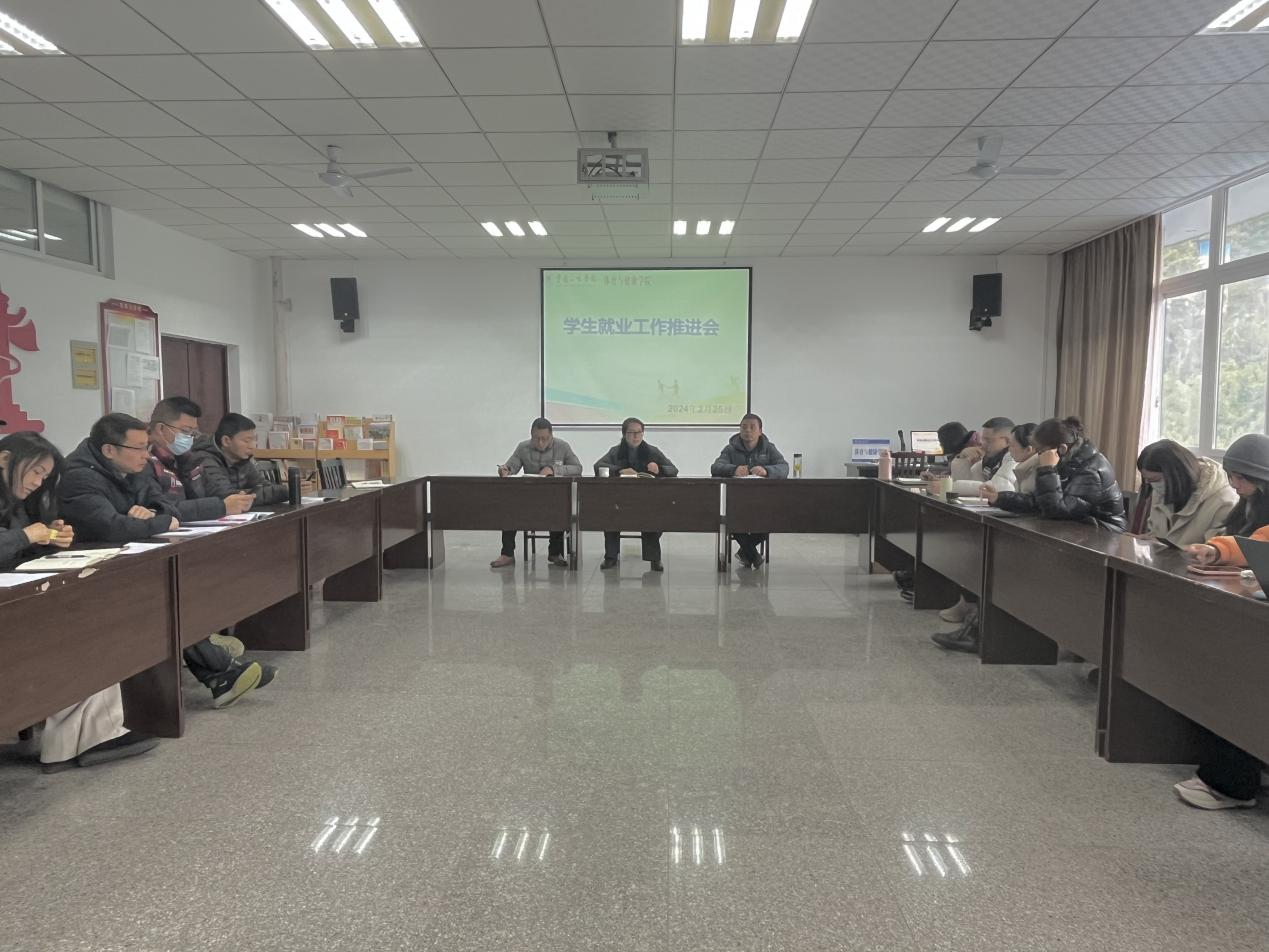 为促进学生就业工作高质量发展,2024年2月25日,Beat365唯一官方网站党总支书记冉金鑫组织召开学生就业工作推进会,副院长刘铮主持会议,副院长刘建宇,辅导员王翔、卢鑫及各专选教师参与会议。
