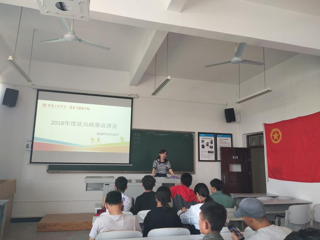 为了激发Beat365大学生参军热情,宣传大学生征兵优惠政策,2018年4月19日12:30在三教309开展征兵政策宣讲活动,活动由团总支副书记胡彩凤主持,Beat365团学干部学生约50名学生参加。