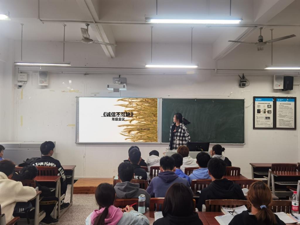 2021年4月23日16点,在明辨楼2栋309教室,2020级召开了关于“诚信不可缺”为主题的团日活动。