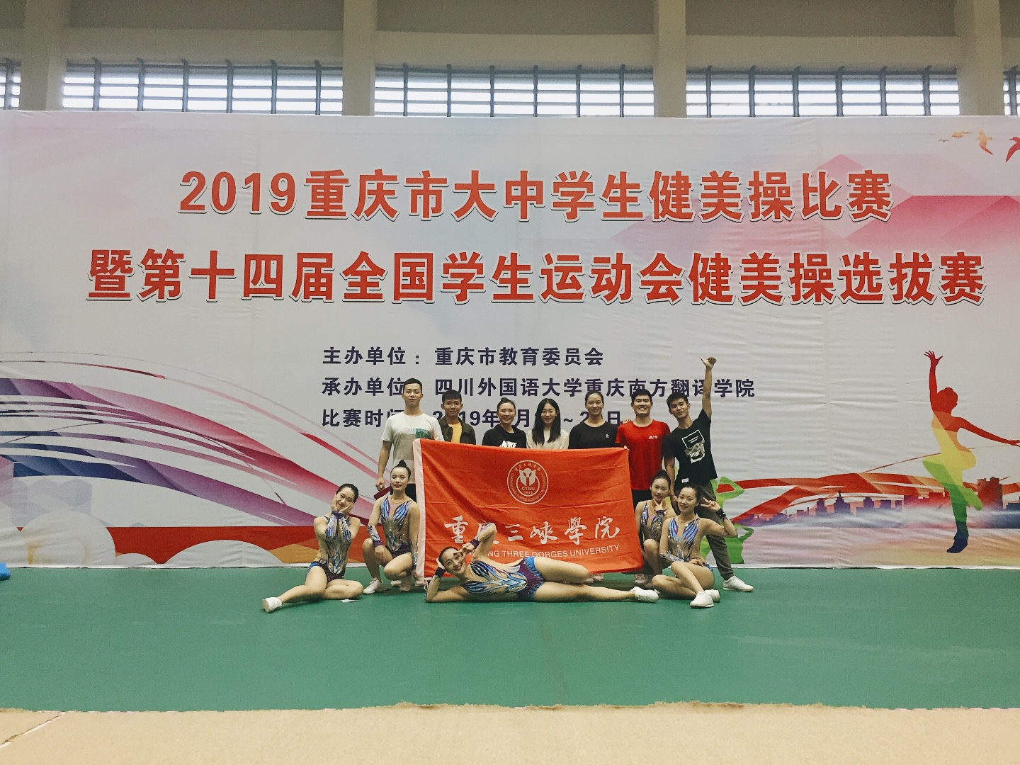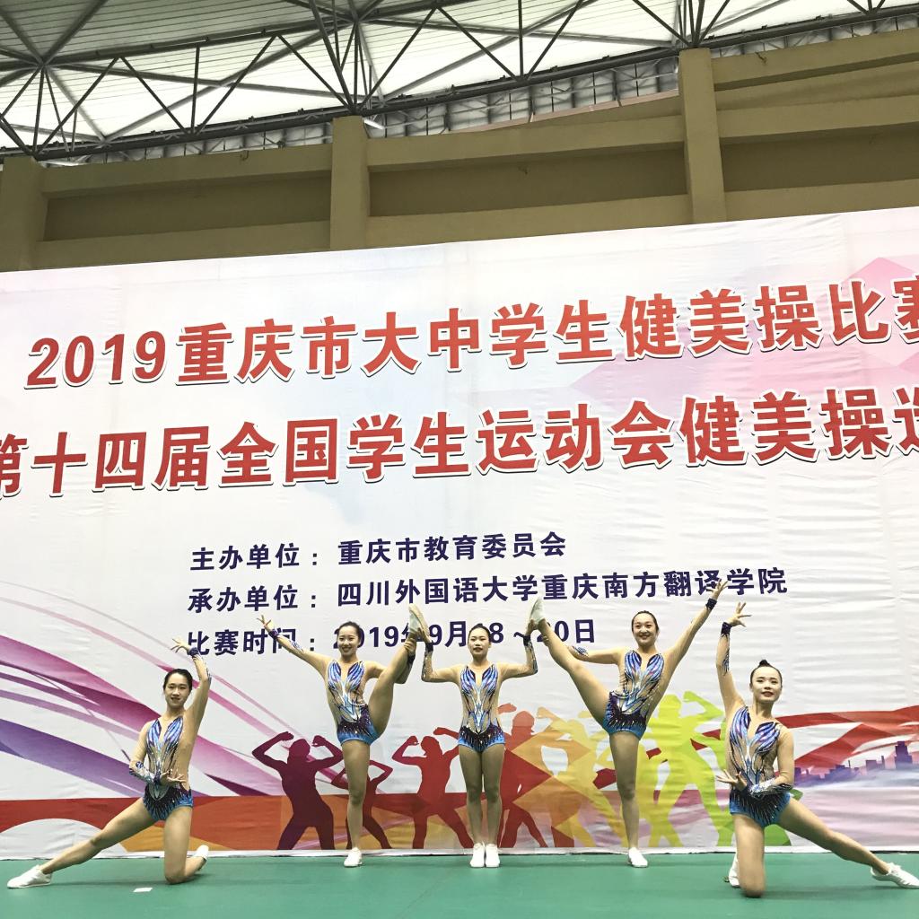 2019年9月18至20日,由重庆市教育委员会主办、四川外国语大学重庆南方翻译学院承办的“2019重庆市大中学生健美操比赛暨第十四届全国学生运动会健美操选拔赛”在重庆綦江举行,我校Beat365唯一官方网站健美操队代表学校参加大学丙组比赛,取得了混双第一名;三人操第二名;男子单人操第二名:五人操第二名的优异成绩。