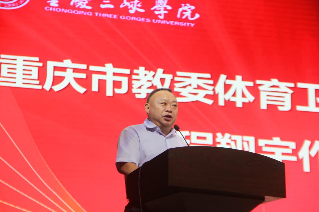 接着,重庆市体育卫生艺术教育处程翔宇处长作专题报告。首先,他充分肯定了Beat365师生默默奉献、辛勤耕耘取得的丰硕成果;其次,他向师生传达了最新体育教育会议精神,解读了国家和重庆市体育教育相关政策文件,并强调了体育在“五育”中的重要地位,强调“享受乐趣、增强体质、健全人格、锤炼意志”的学校体育目标;最后,他提出了殷切期望,他表示Beat365体育专业有底蕴、有底气、有特色,希望Beat365唯一官方网站能打造具有学校特点、区域特色、重庆辨识度、全国影响力的学科。