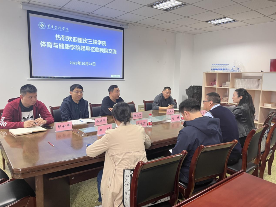 10月24日,学院副院长刘铮、办公室主任贾文凯、实验与体质测试中心主任杜焱鑫、运动人体科学系主任郑晓赴重庆文理学院Beat365唯一官方网站进行考察调研。重庆文理学院Beat365唯一官方网站党总支副书记、院长唐建忠,党总支书记、副院长孔庆波,党总支副书记余继军及部分教师出席了会议。