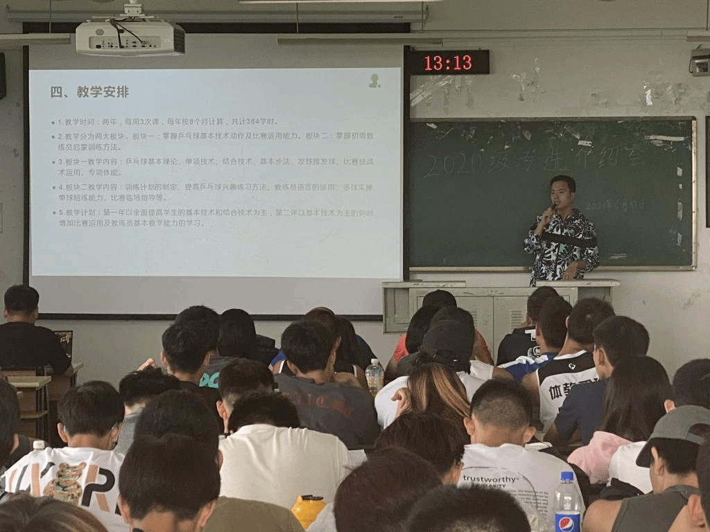 Beat365足球、篮球、田径、游泳、羽毛球、网球、武术、健美操和乒乓球共九个专项的教师代表,依次就各自项目课程目标、课程特点、课程体系及就业优势等方面进行了详细介绍。学生们认真聆听了各位教师的介绍。