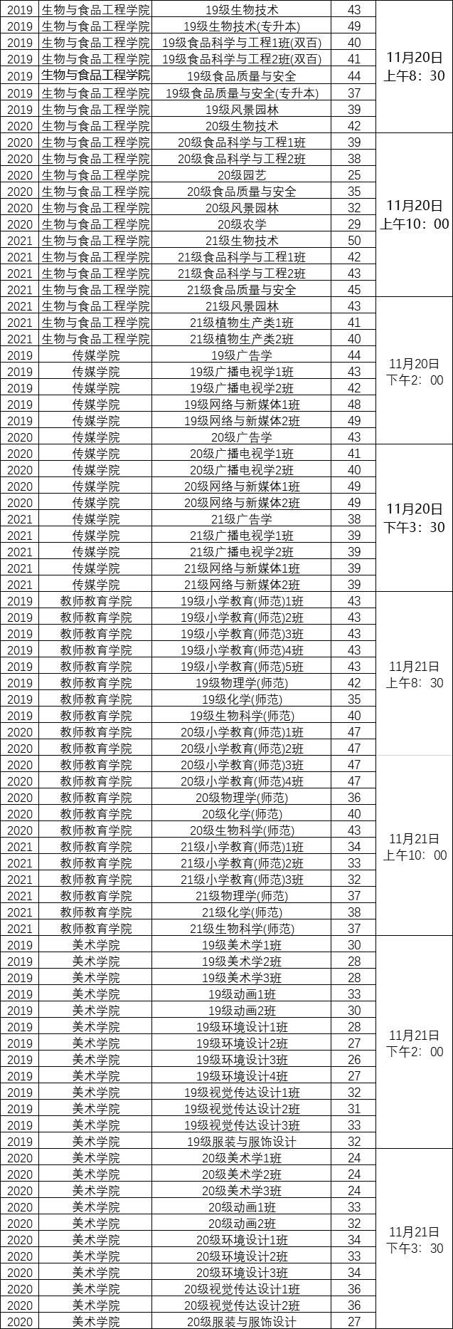 以下为本周测试班级,请各班提前30分钟到场自主进行热身活动: